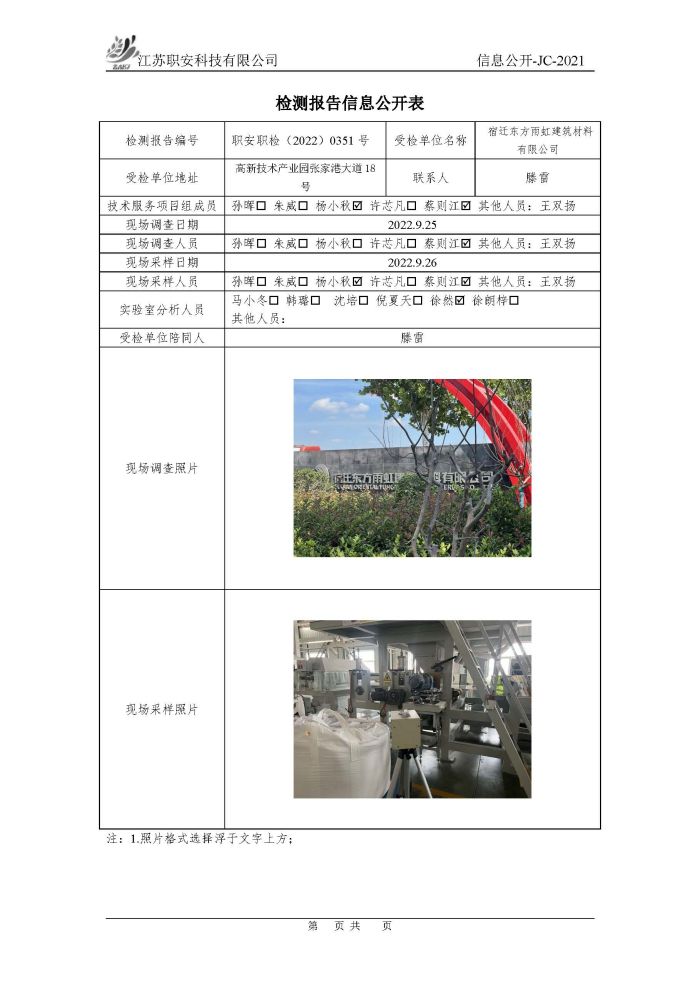 檢測報告公示