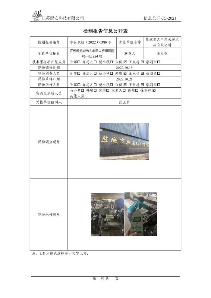 檢測報告公示