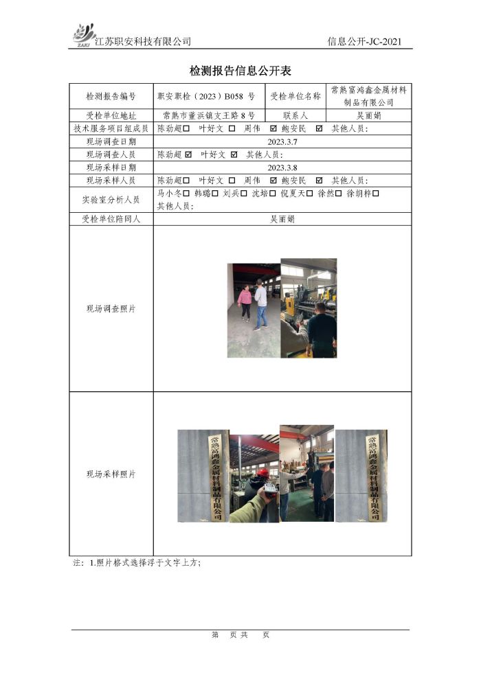 檢測報告公示