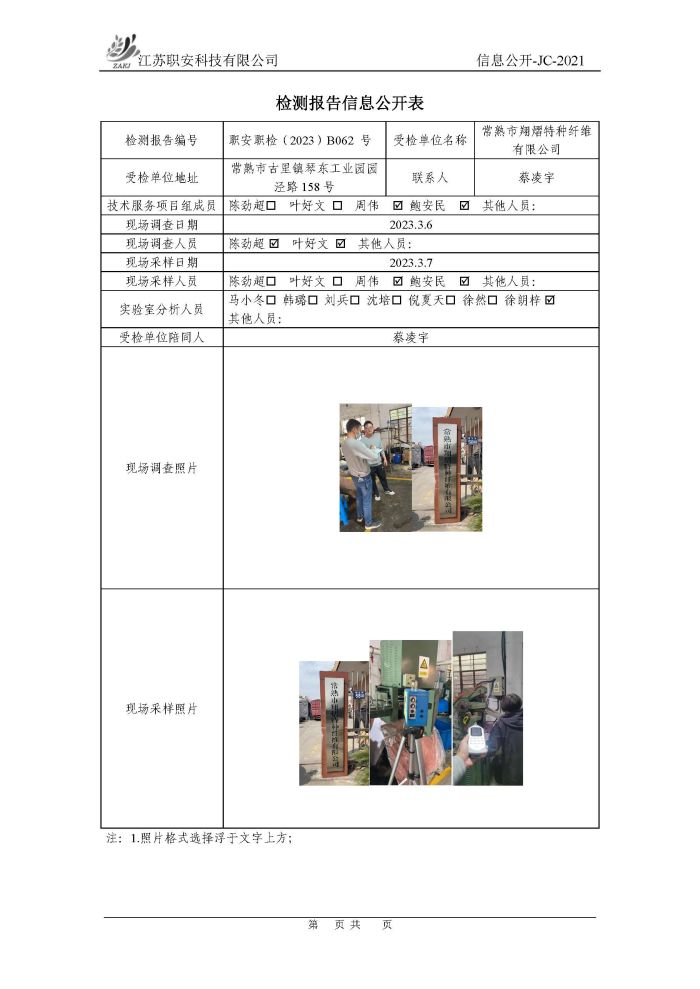 檢測報告公示