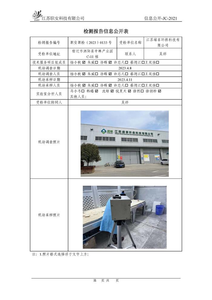 檢測報告公示