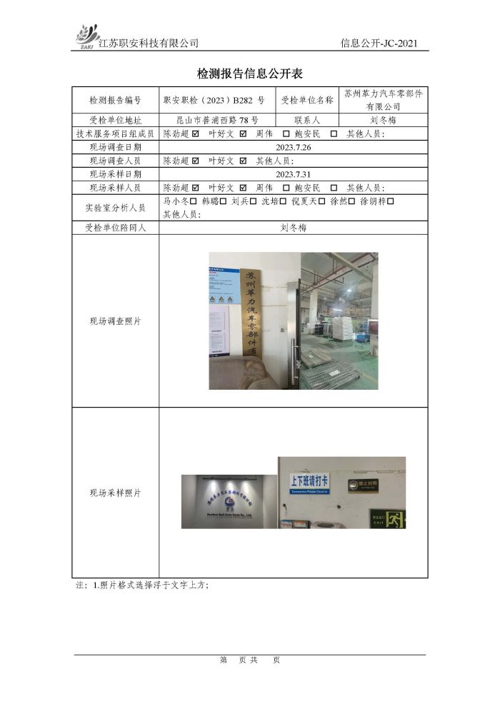 檢測報告公示