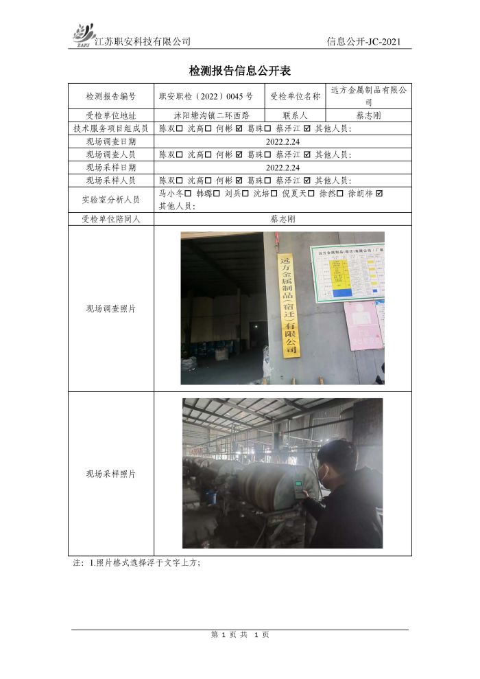 檢測報告公示