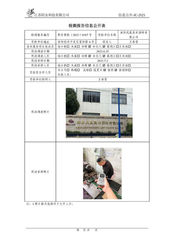 檢測報告公示