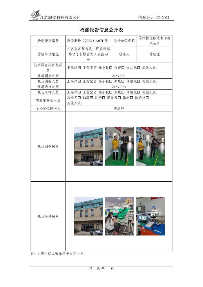 檢測報告公示
