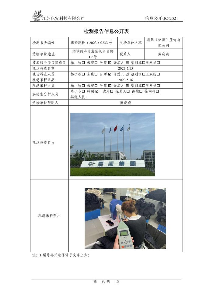 檢測報告公示