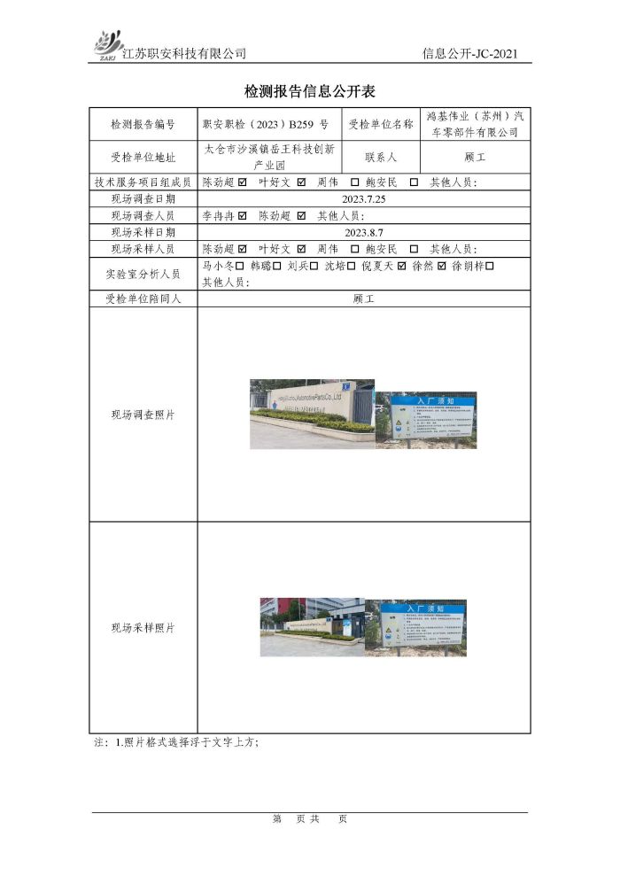 檢測報告公示