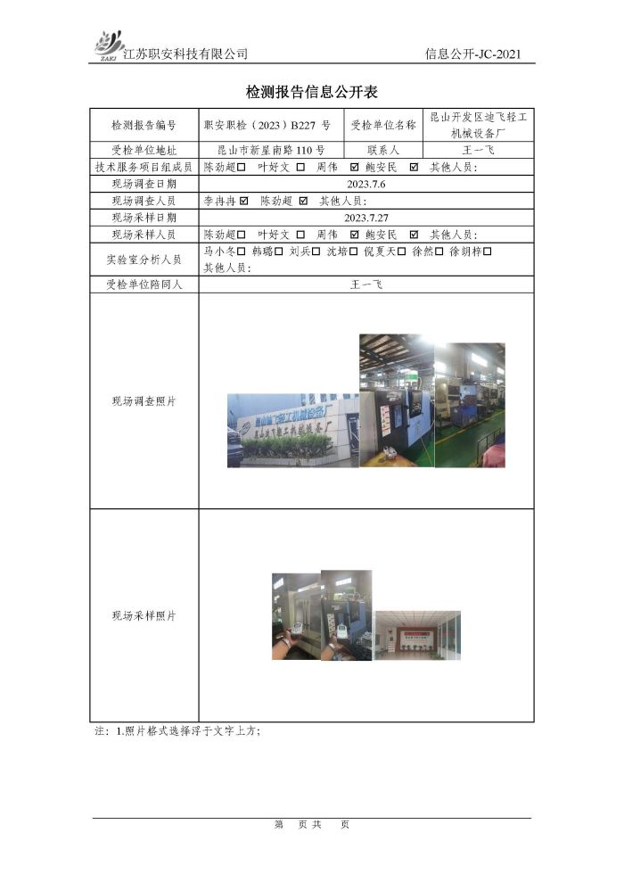 檢測報告公示