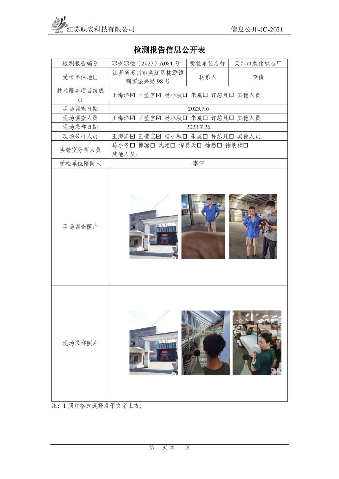 檢測報告公示