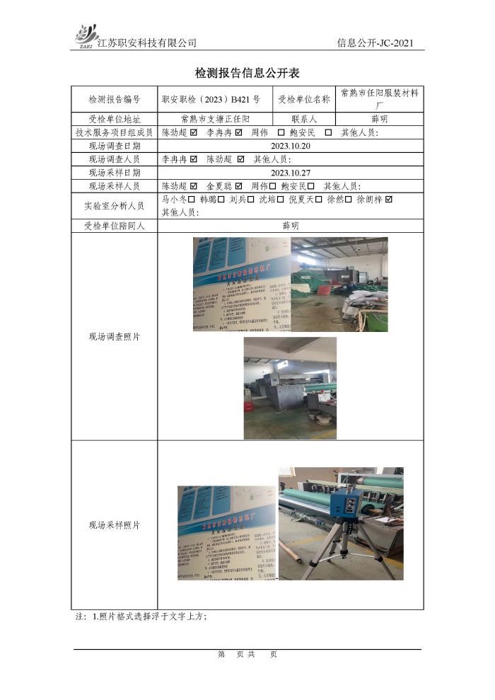檢測報告公示