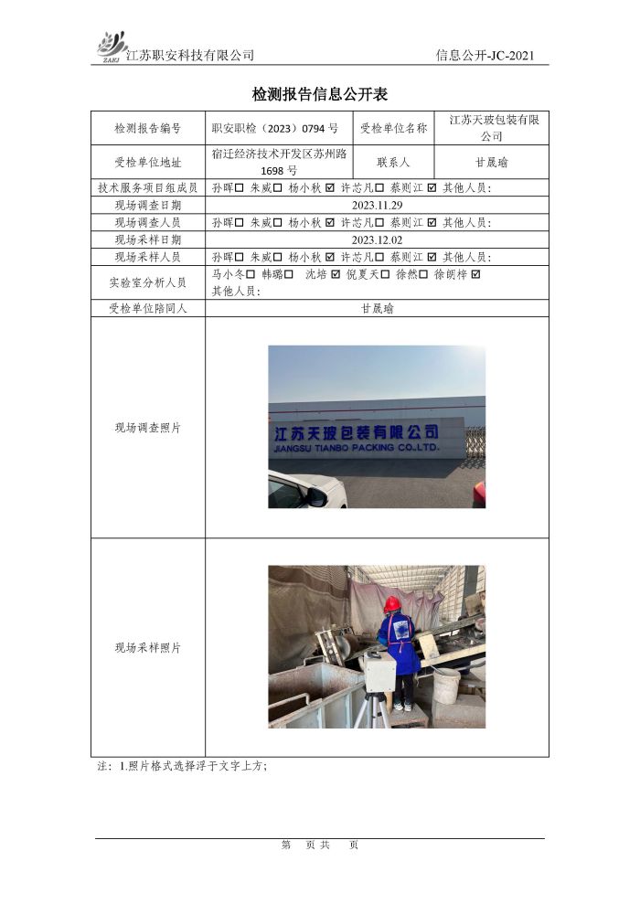 檢測報告公示