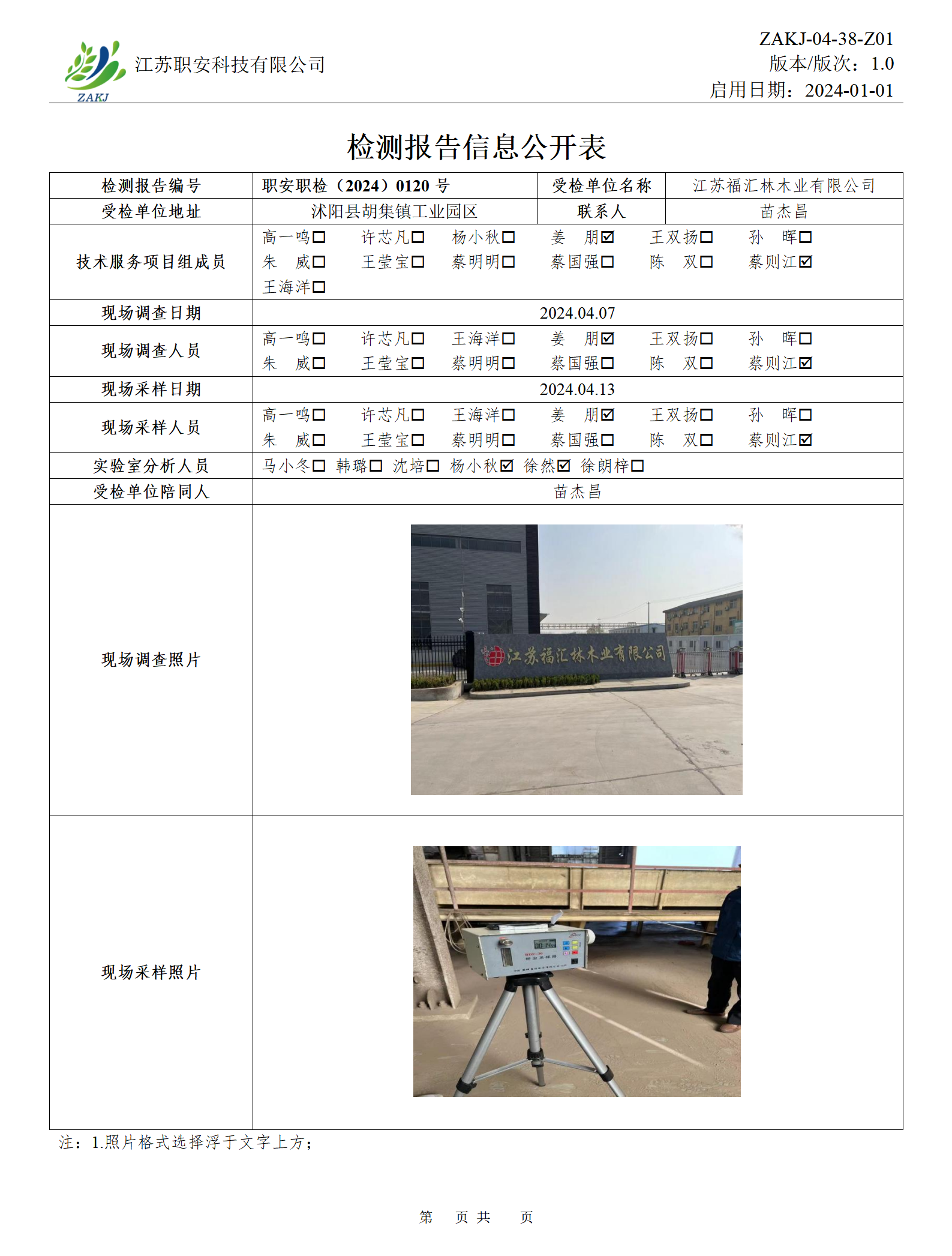檢測報告公示