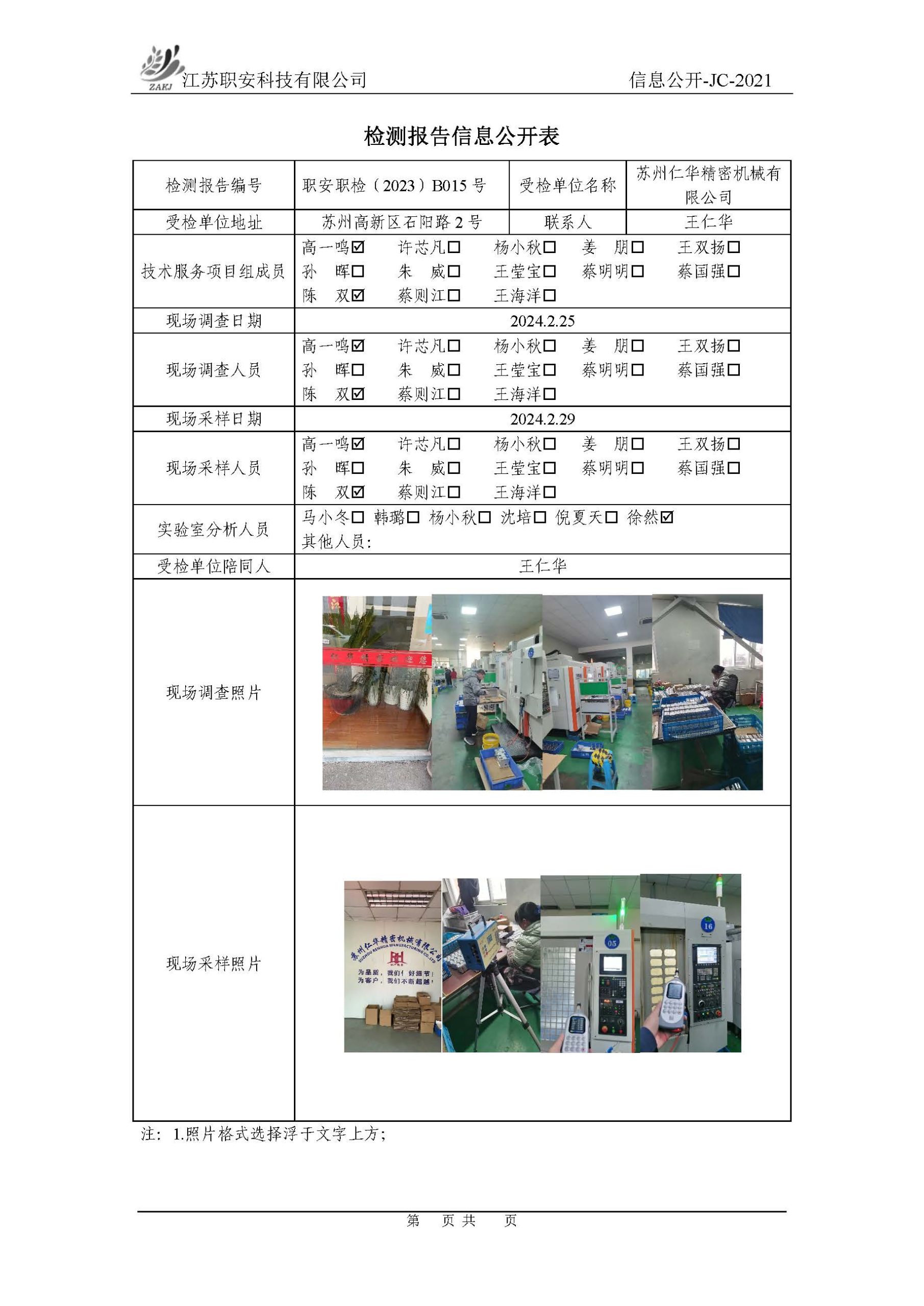 檢測報告公示