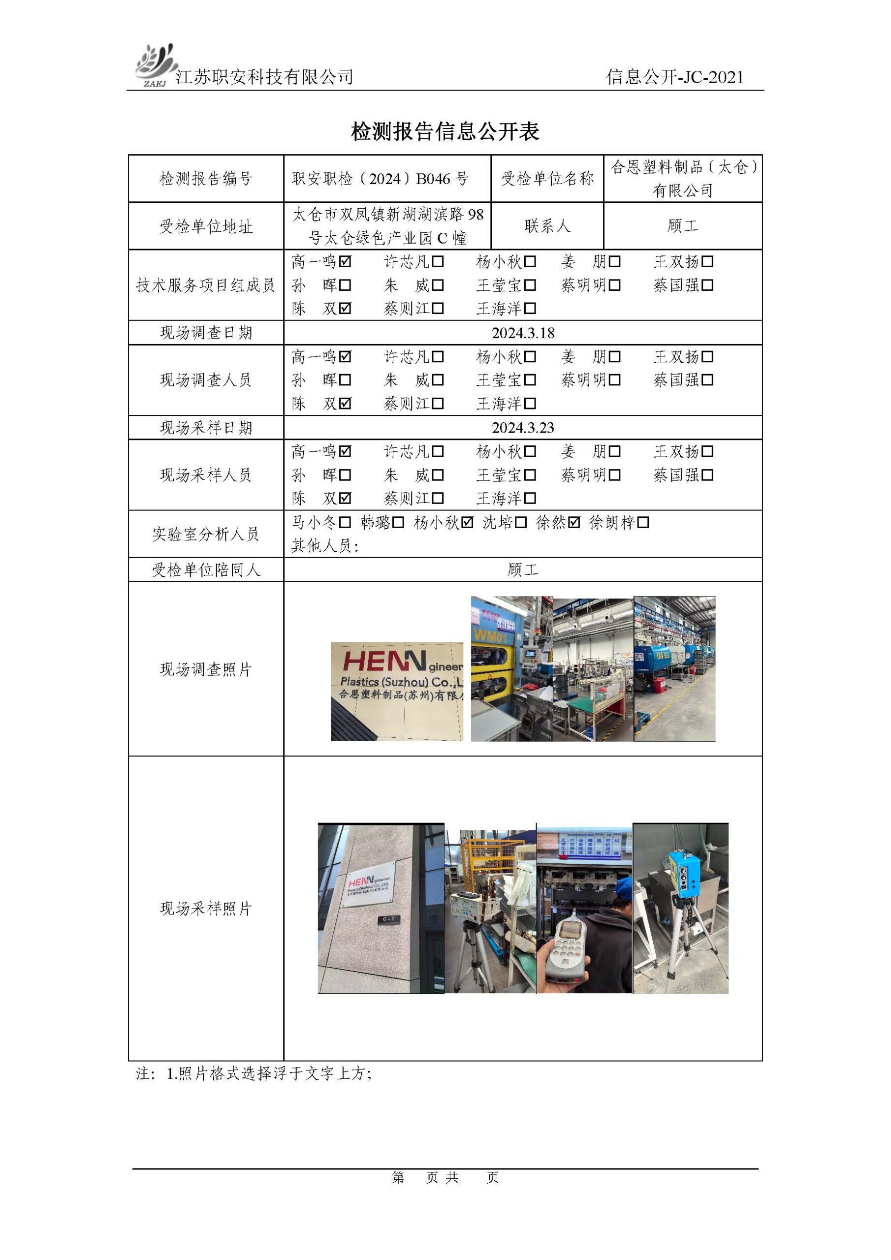 檢測報告公示