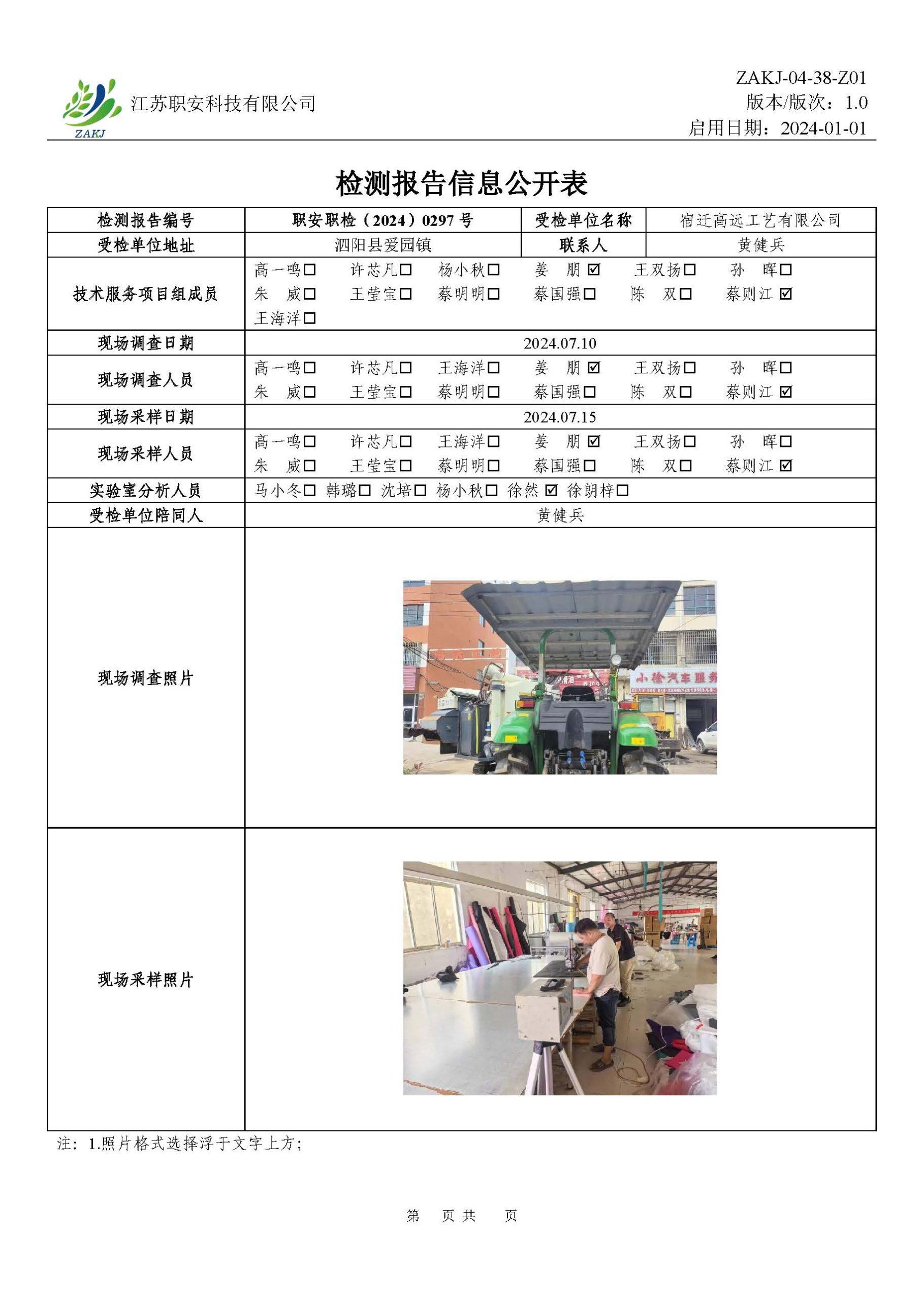檢測報告公示