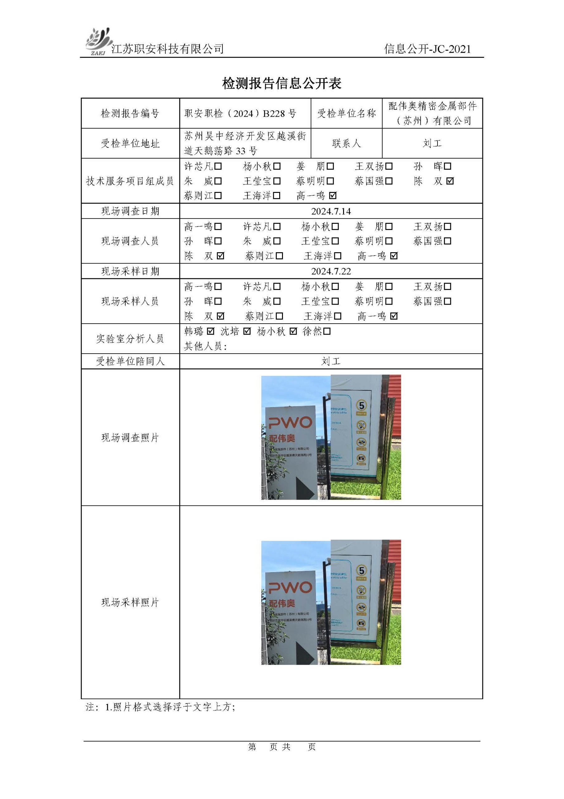 檢測報告公示