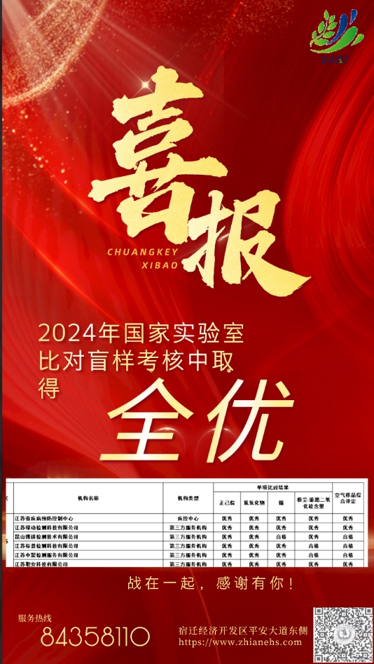 喜報(bào),江蘇職安科技有限公司在2024年度國家實(shí)驗(yàn)室比對(duì)盲樣考核中取得全優(yōu)