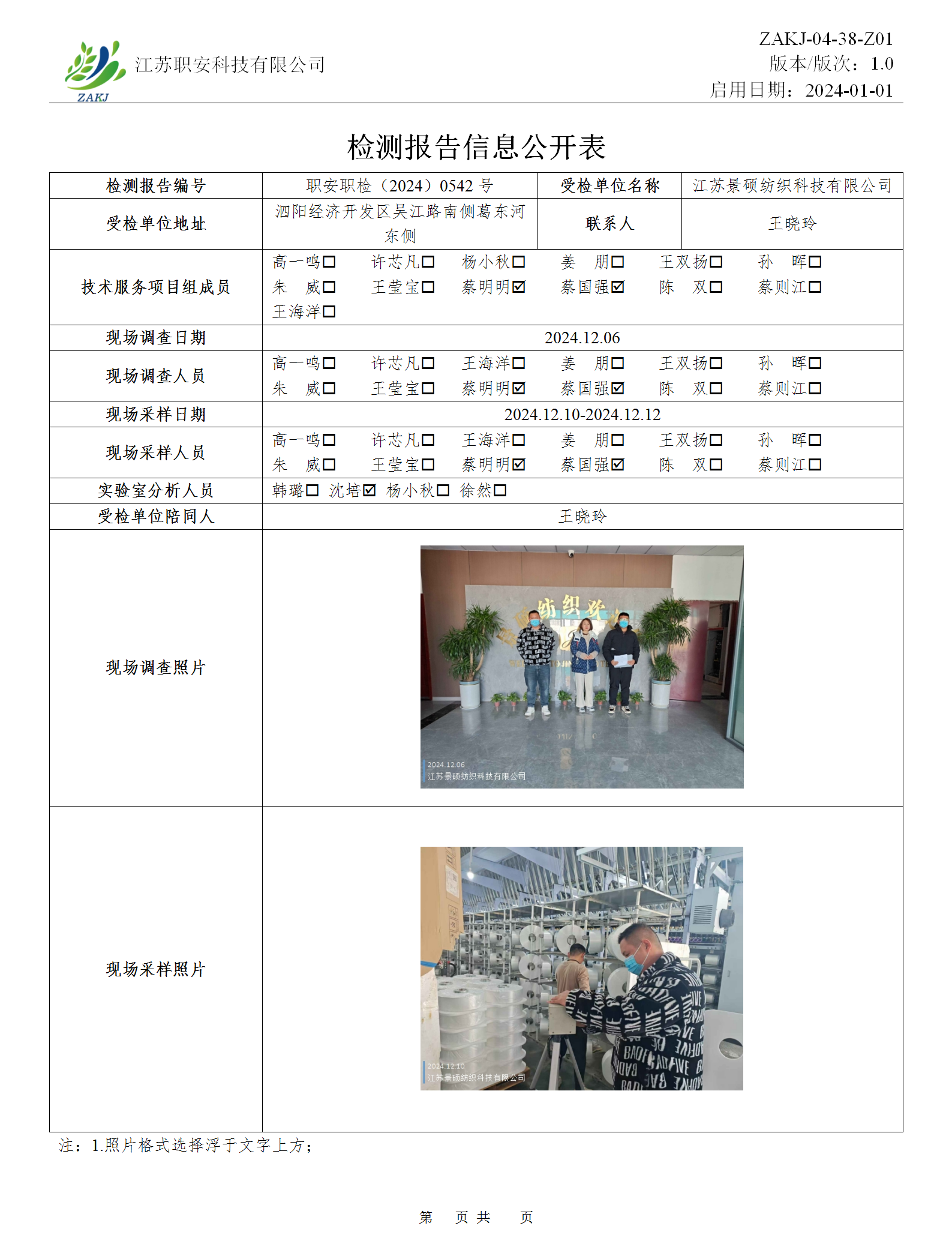 檢測報告公示