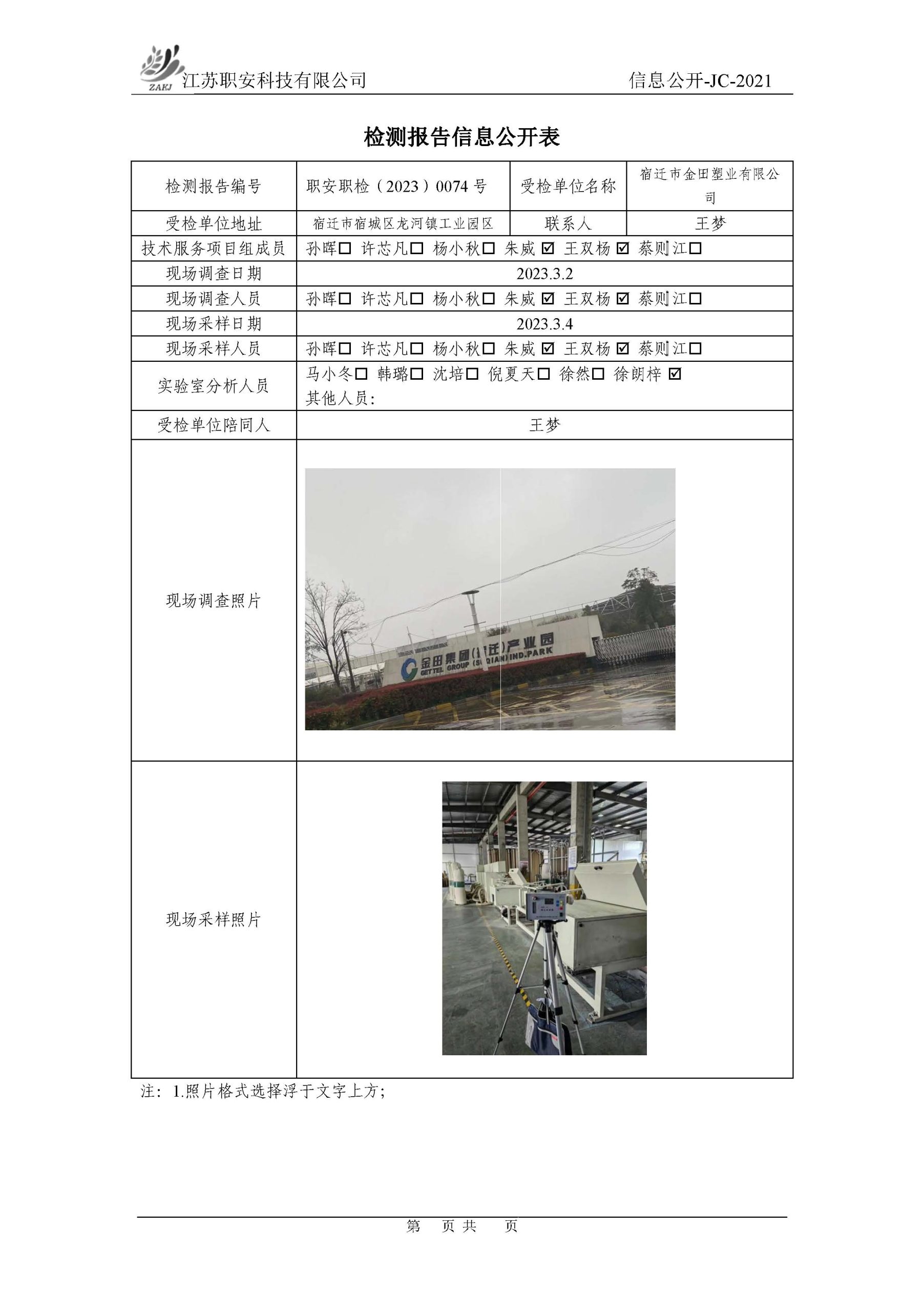 檢測報告公示