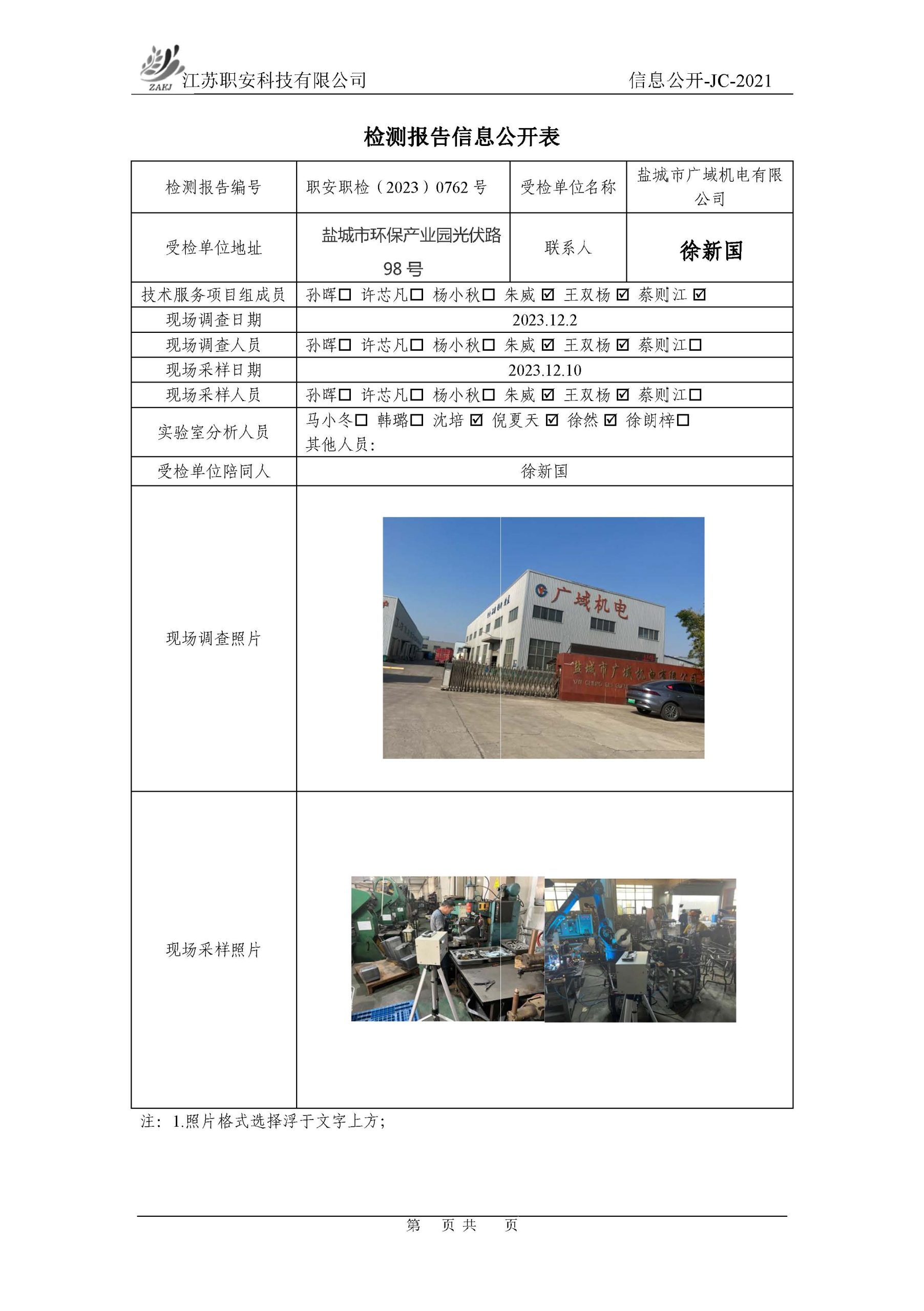 檢測報告公示