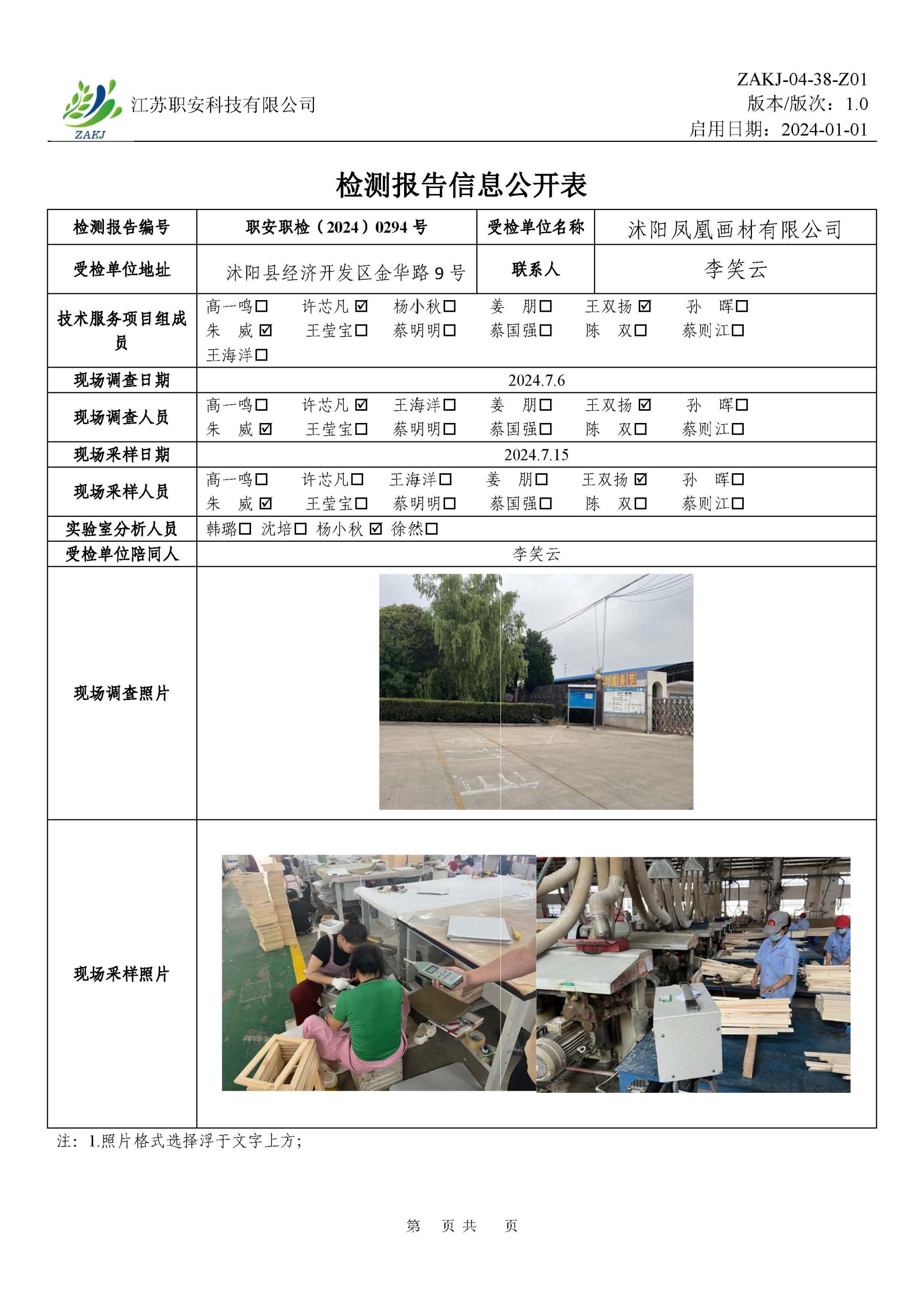 檢測報告公示