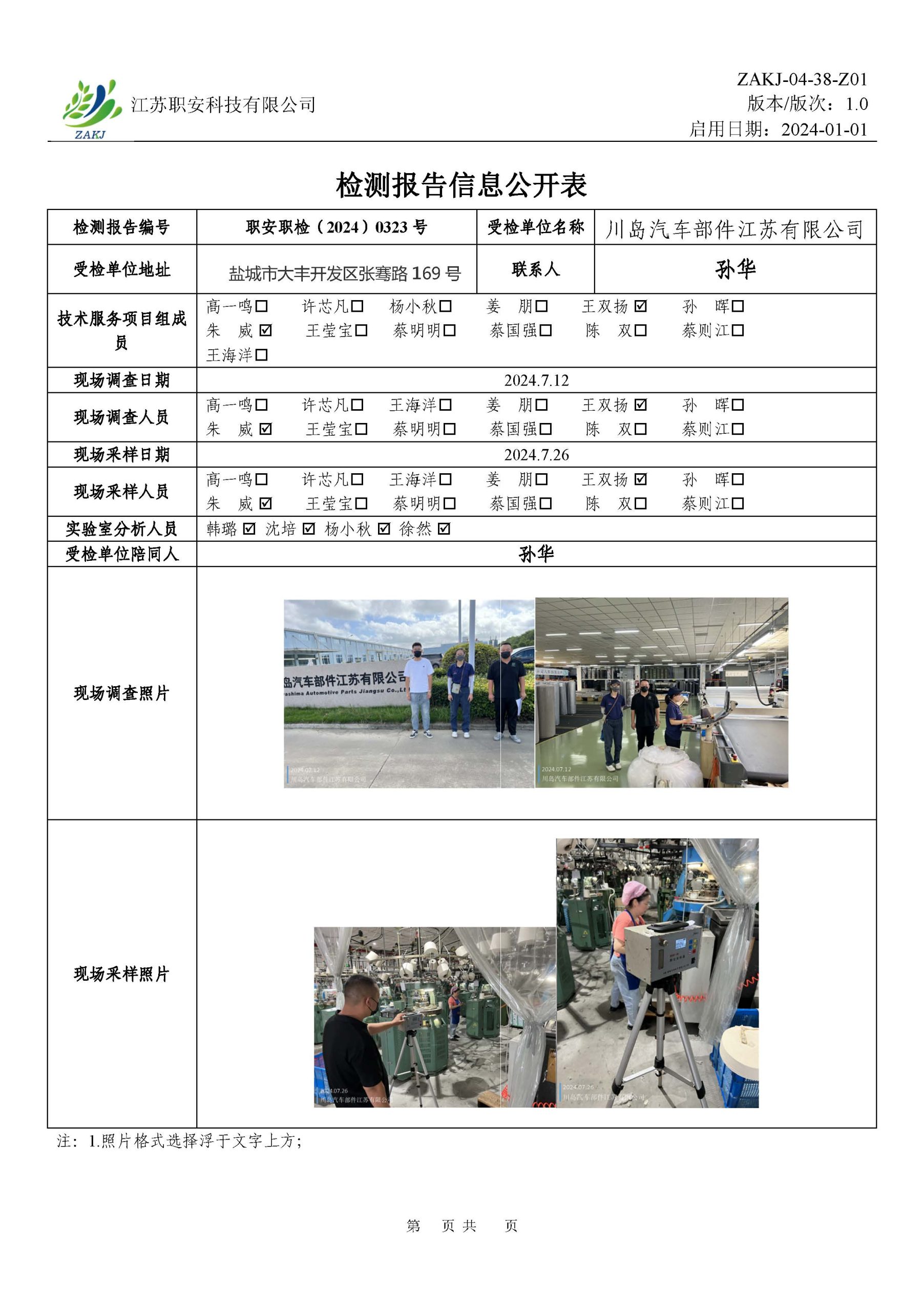 檢測報告公示