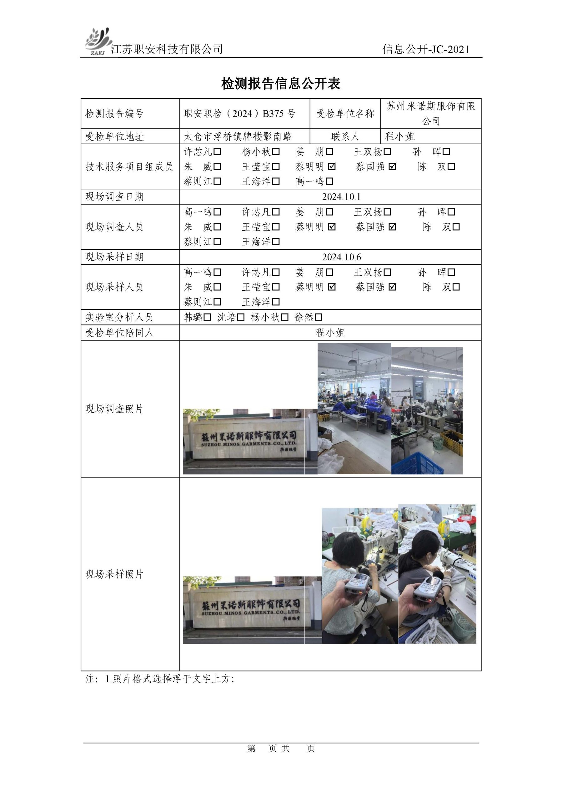 檢測報告公示