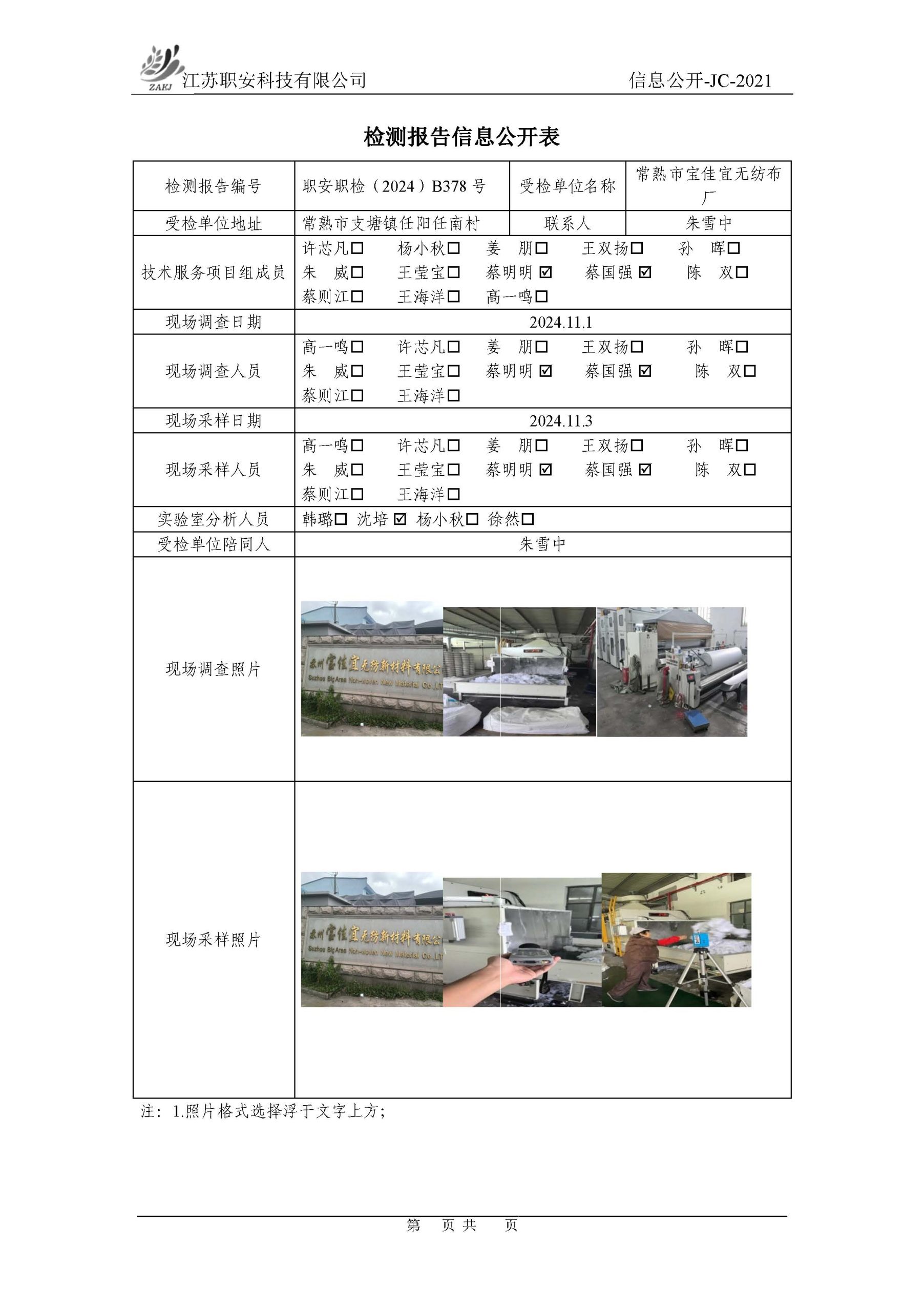 檢測報告公示