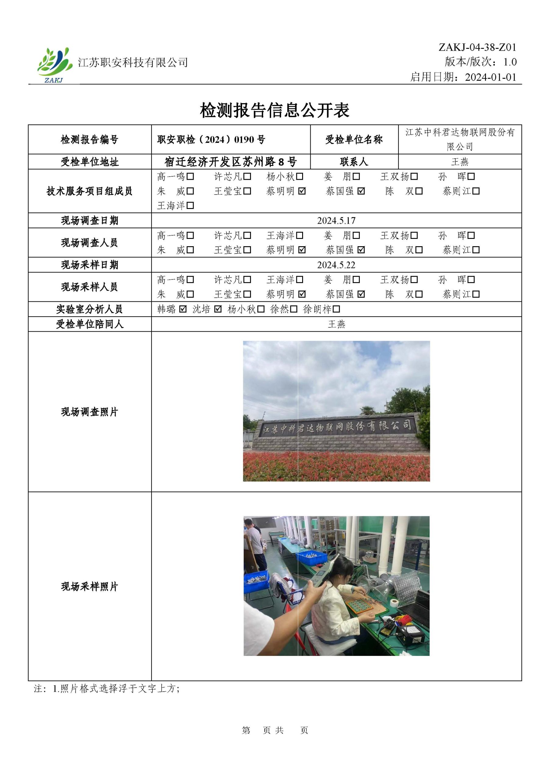 檢測報告公示