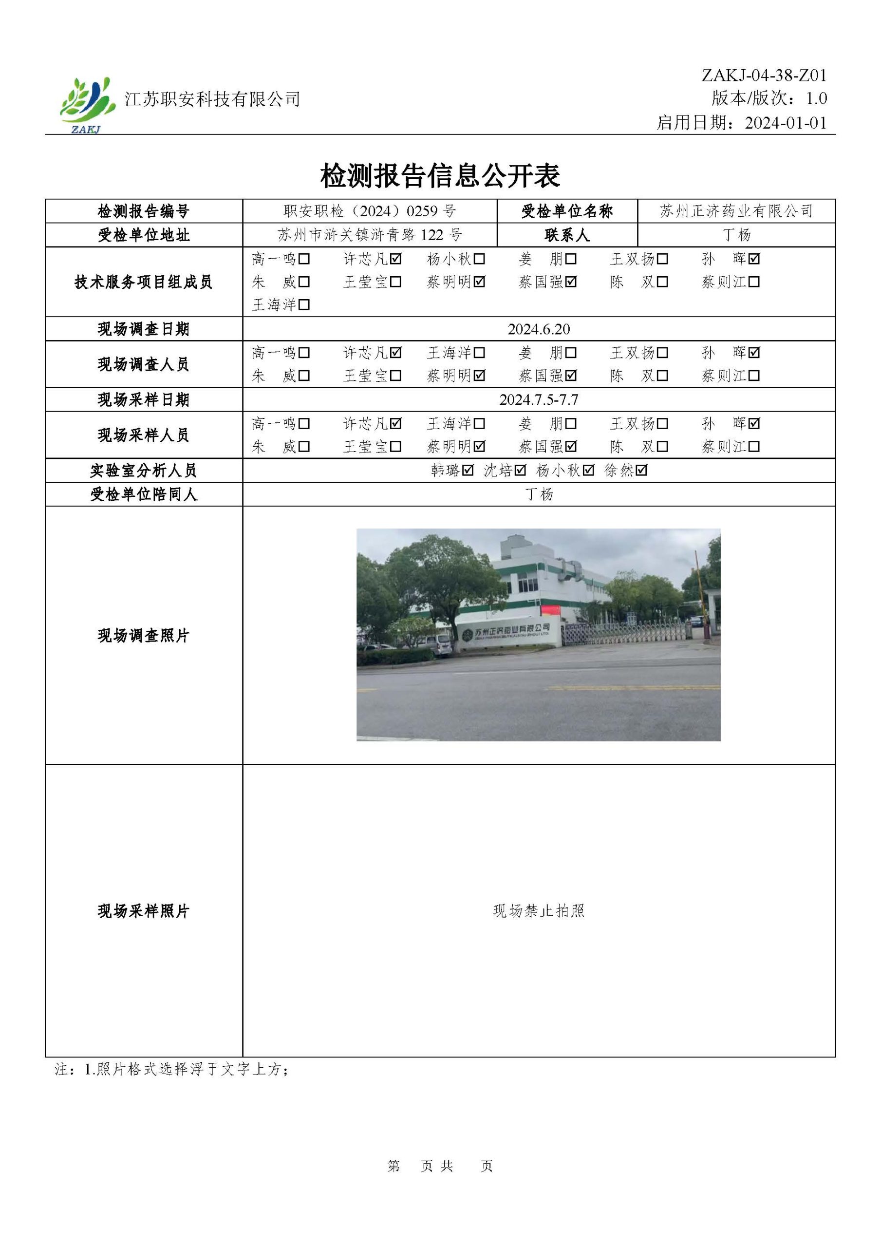 檢測報告公示