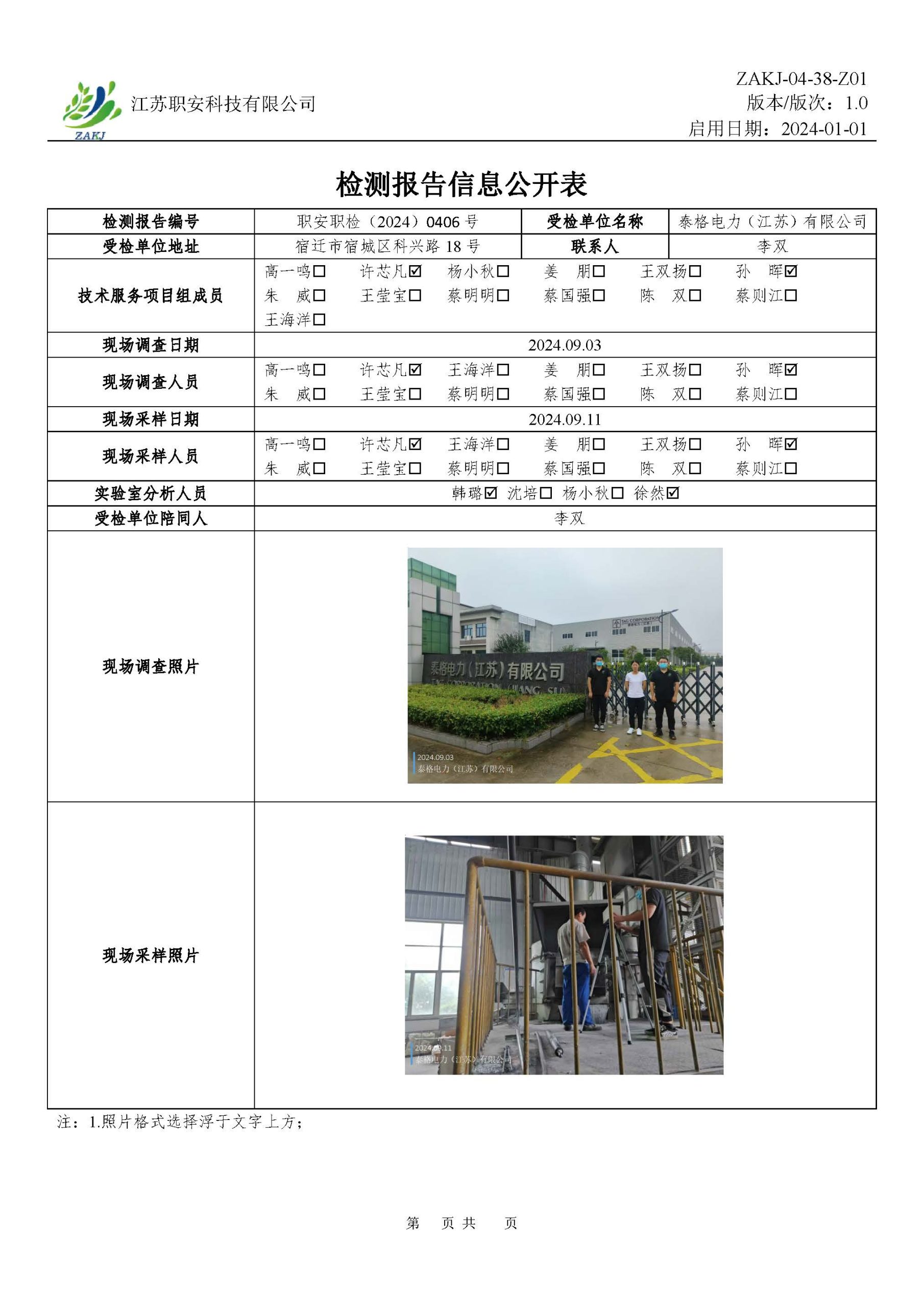 檢測報告公示