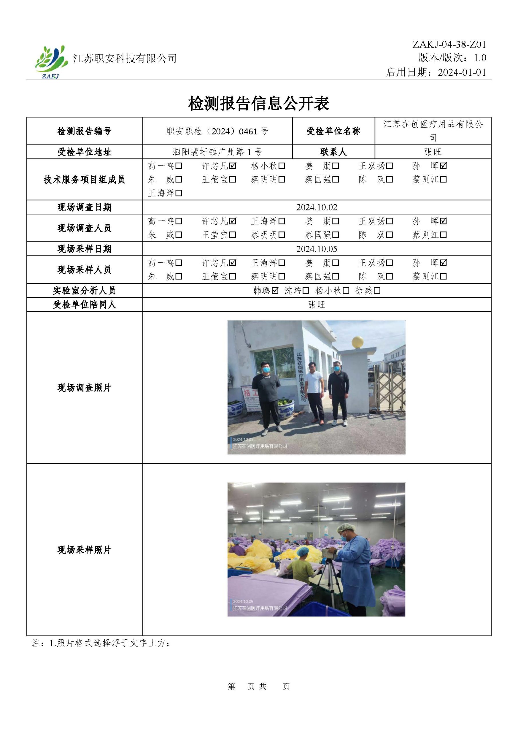 檢測報告公示