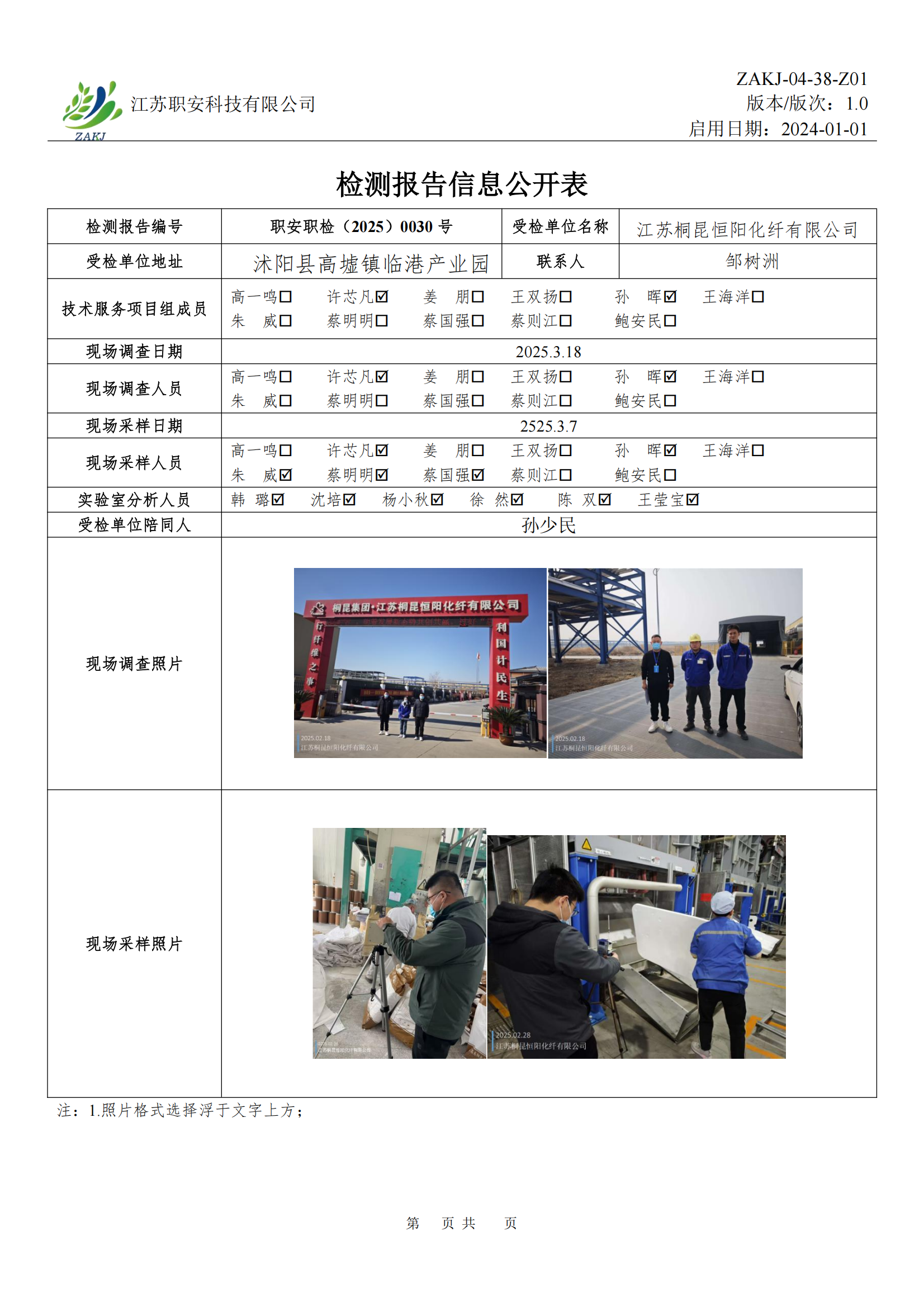 檢測報告公示