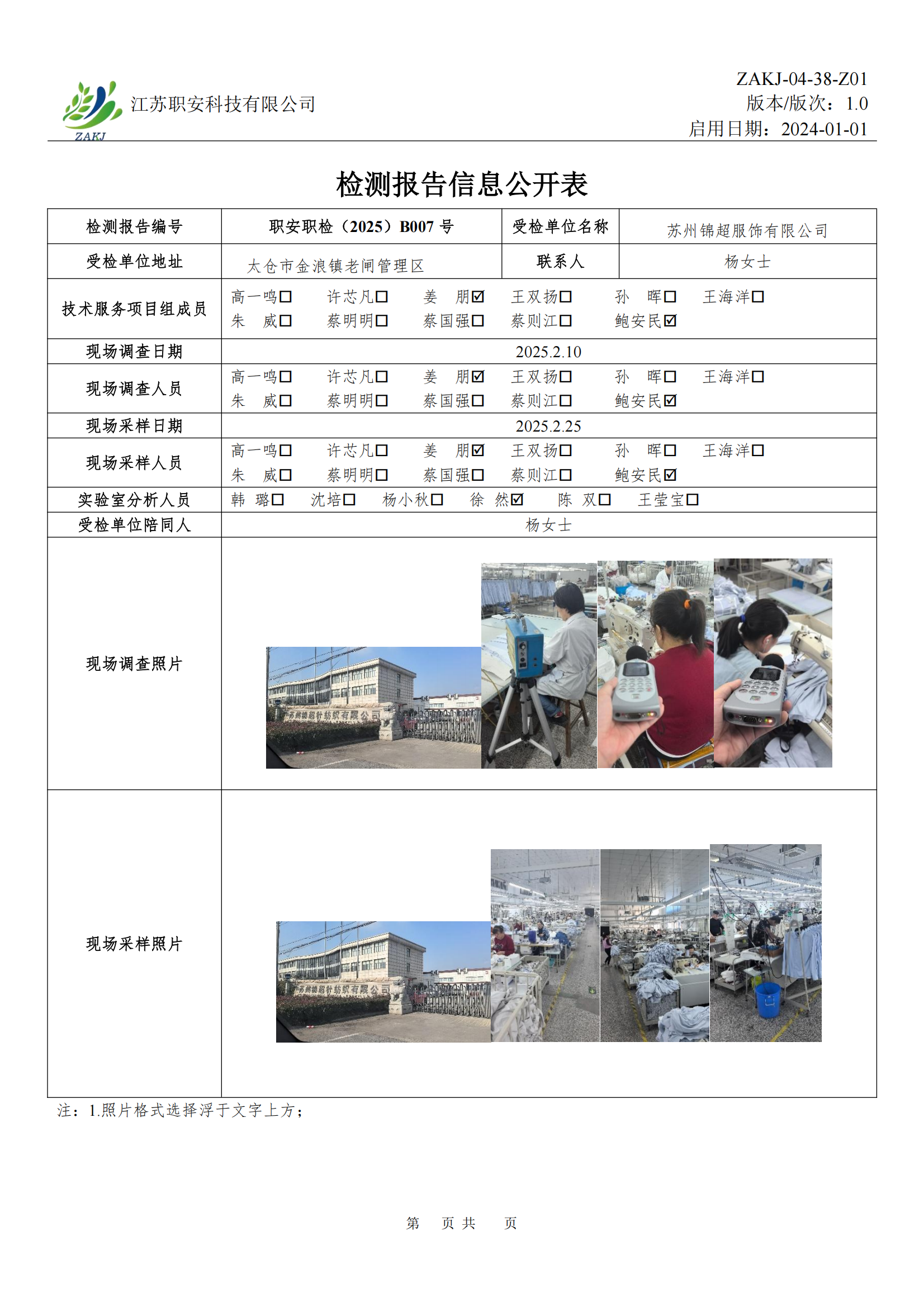 檢測報告公示