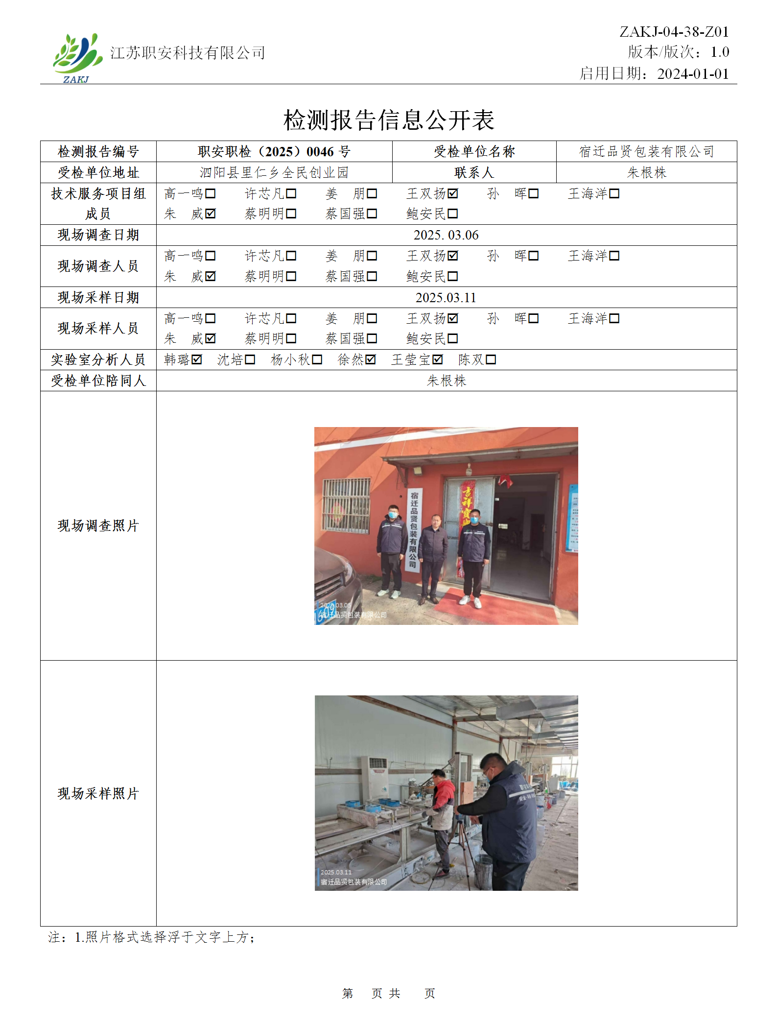 檢測報告公示