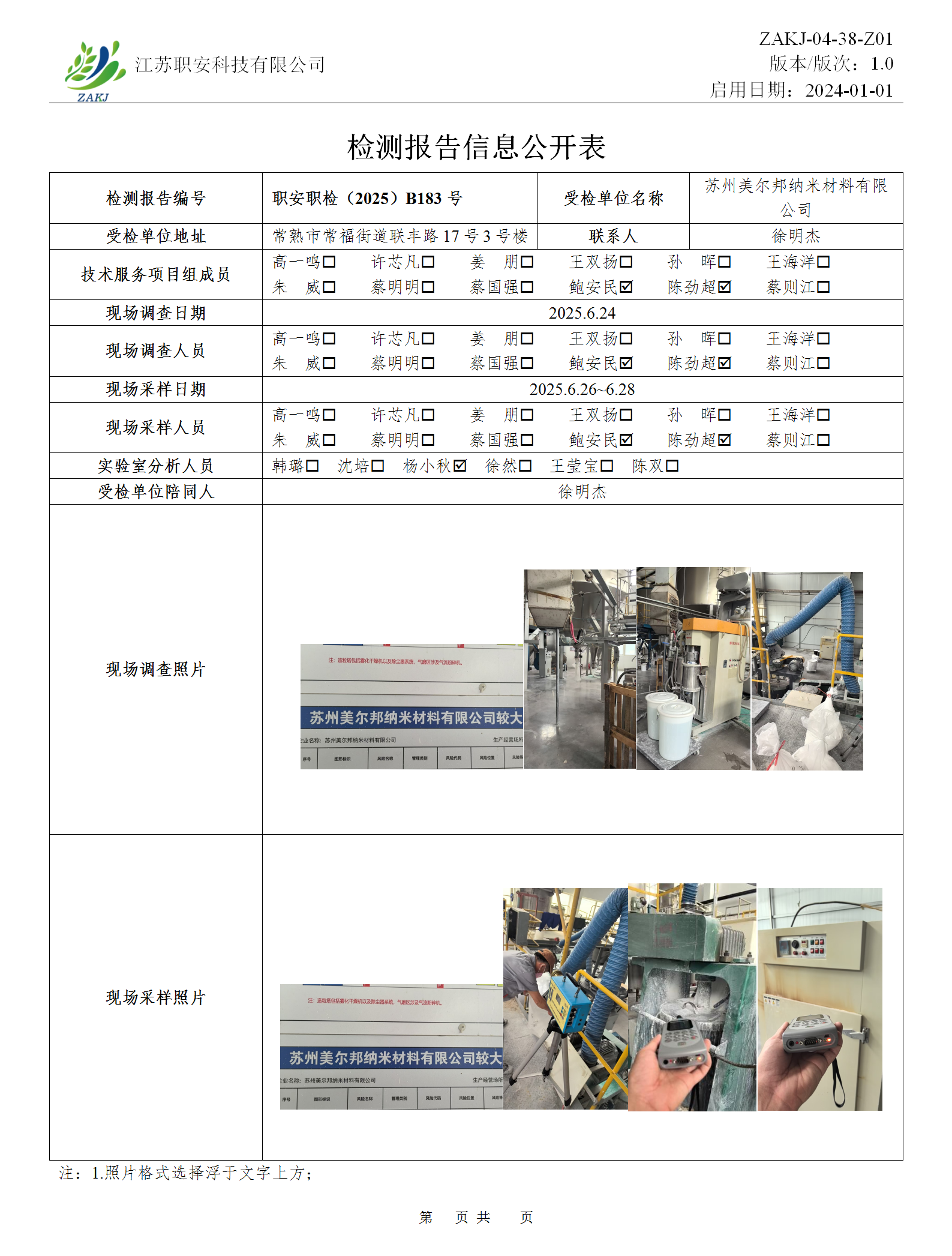 檢測報告公示