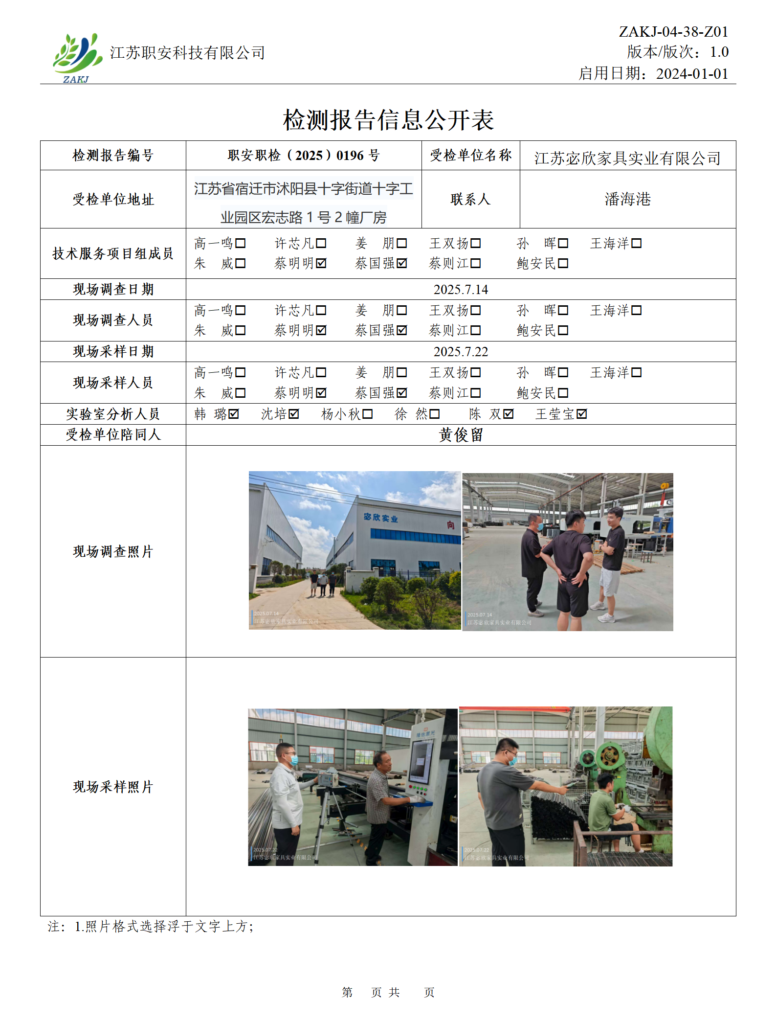 檢測報告公示